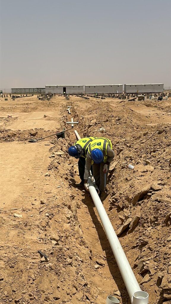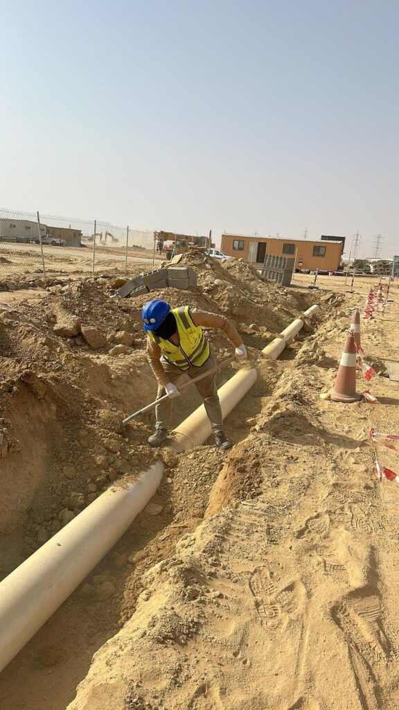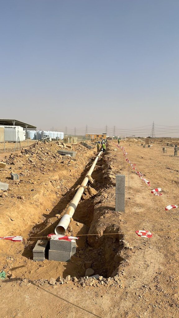 The Drainage Pipeline Work project in Al Qassim was executed for Shandong Tiejun Electric Power Engineering to enhance the site’s water management infrastructure. This project involved the construction, installation, and commissioning of extensive drainage pipelines designed to efficiently channel water and prevent flooding or waterlogging in critical operational areas.